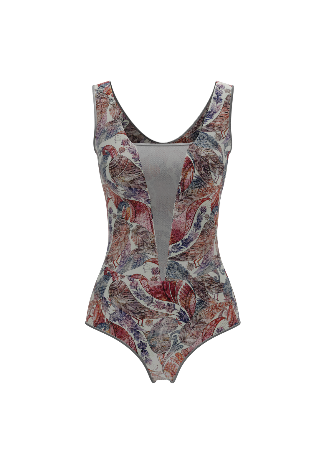 "Donna" – це суцільний розумний купальник з глибоким вирізом на грудях і напівпрозорою вставкою, яка...