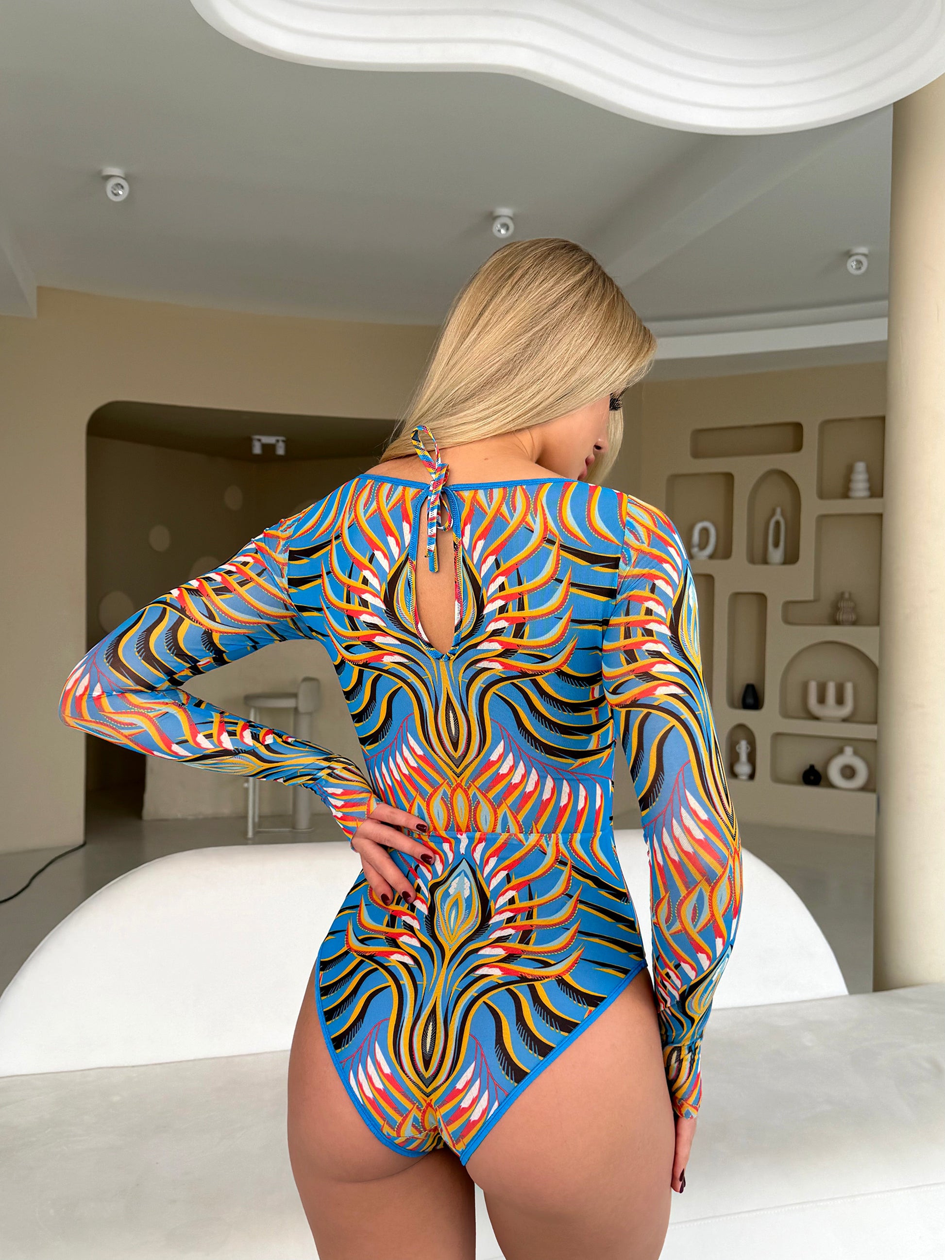 Hey! I am Ariel, and I am created for those who value the balance between comfort and style. My round neckline adds lightness and freshness to the image, and long sleeves protect your skin from excessive sun. I will help you feel confident and harmonious both on the beach and by the pool.