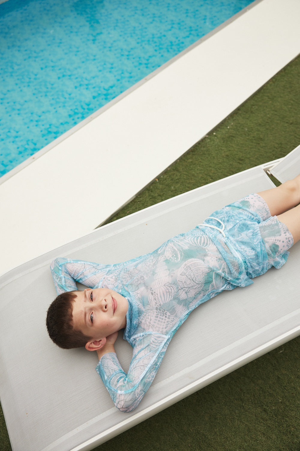 Children's delicate skin deserves special protection. That's why we created children's swimwear and beachwear from a smart fabric that works as a light natural SPF. It transmits sunlight in a dosed way, allowing you to sunbathe safer, and at the same time protects against overheating.