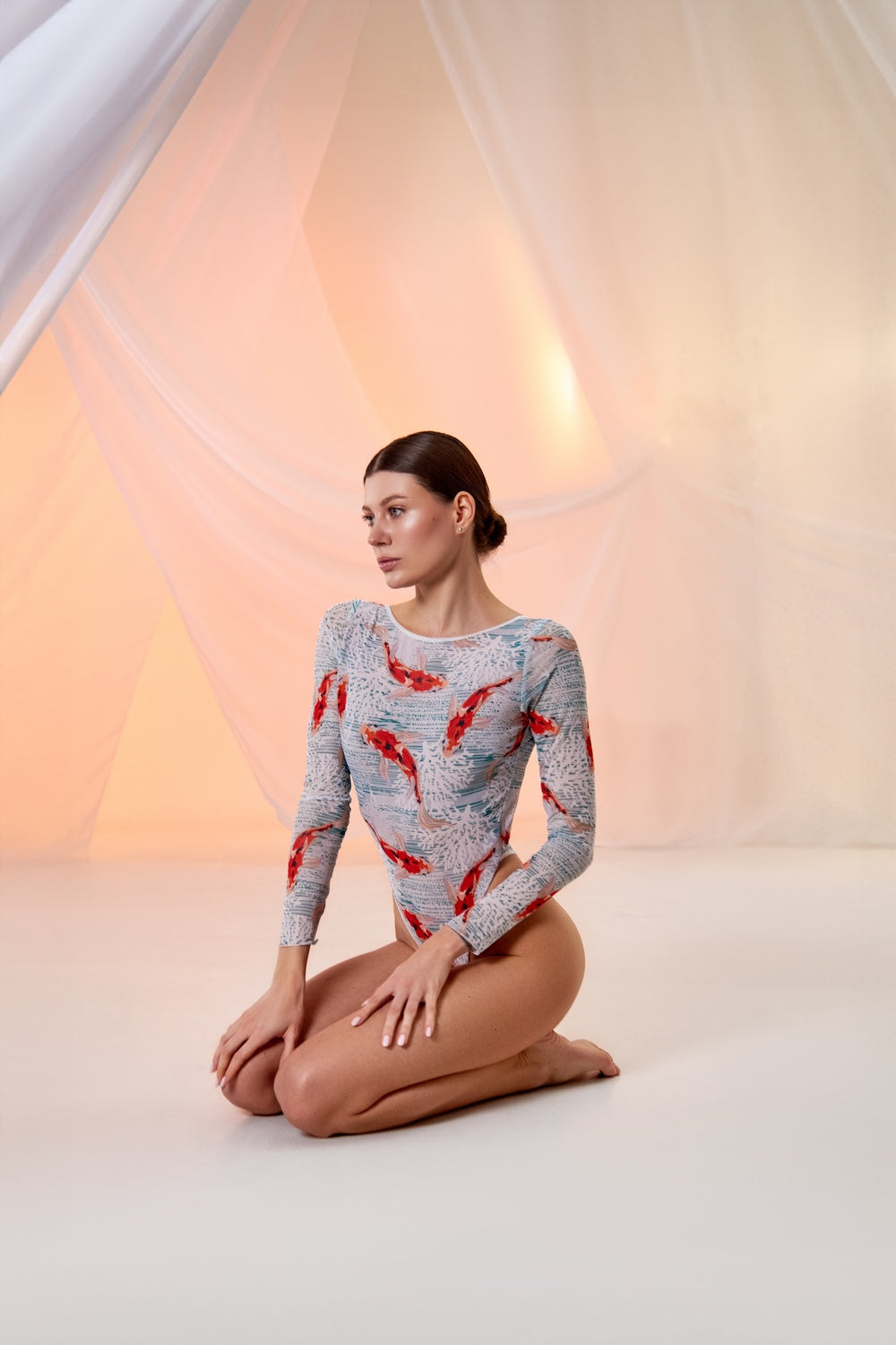 Hi, I'm Scarlet. My energy is a combination of boldness and elegance. Long sleeves give a sense of confidence and protection, and an open neckline on the back adds lightness and temptation. I am created to make you feel special both on the beach and during active recreation by the water. My uniqueness lies in the balance: I cover where necessary and leave space for the sun where you want to feel it.